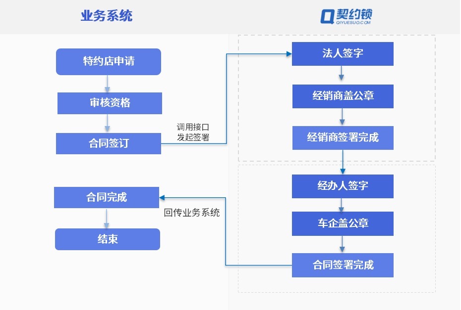 契约锁帮助集成采购系统与车企内部ERP软件打通,支撑采购补退差价业务全过程中的“价格协议、结算单、明细表”在线签署需求,1天内远程完成差价补退和订单结算。