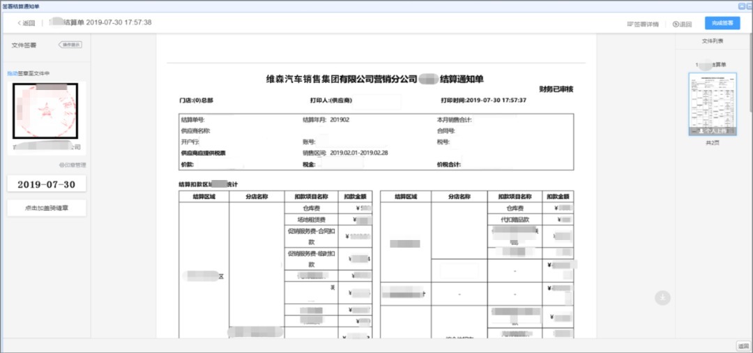 车企定期要和经销商对账、结算,全国的经销商都要一一起草单据,快递过去,签字确认后采购结算,不仅周期长成本高,一旦出现冒签,追责收款难。
